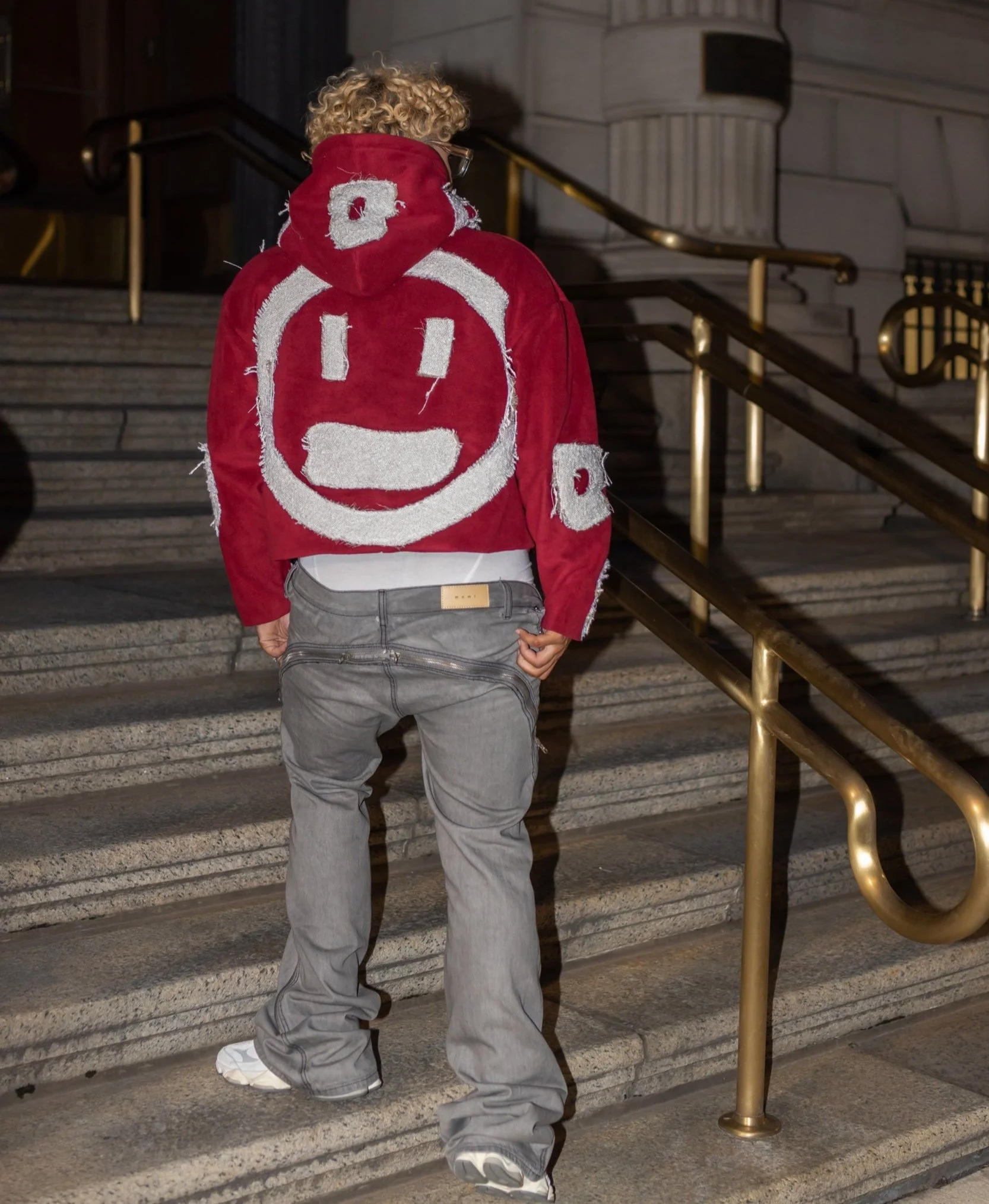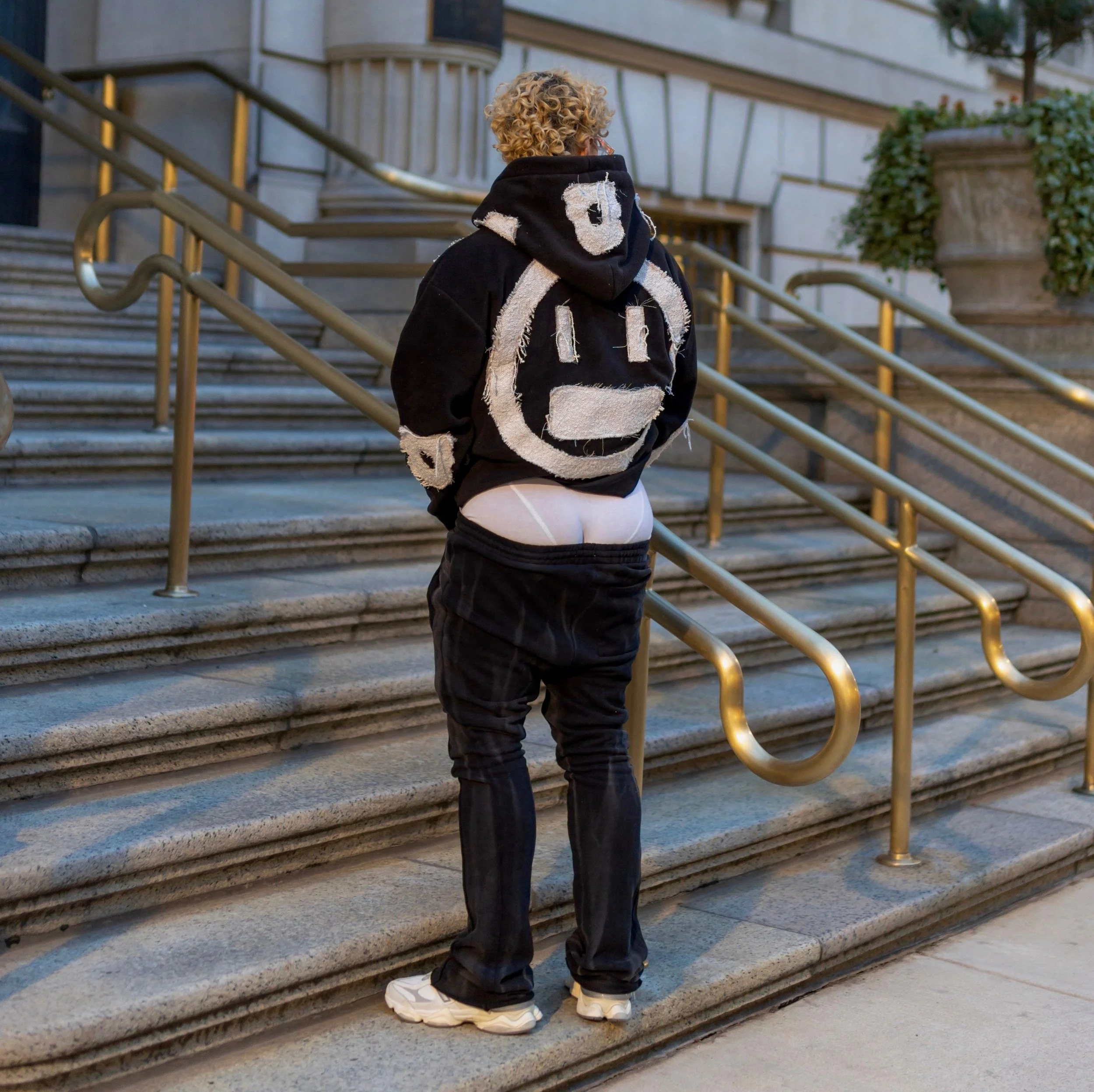 ☹ ESSENTIAL DISTRESSED HOODIE ( BLACK / RED)