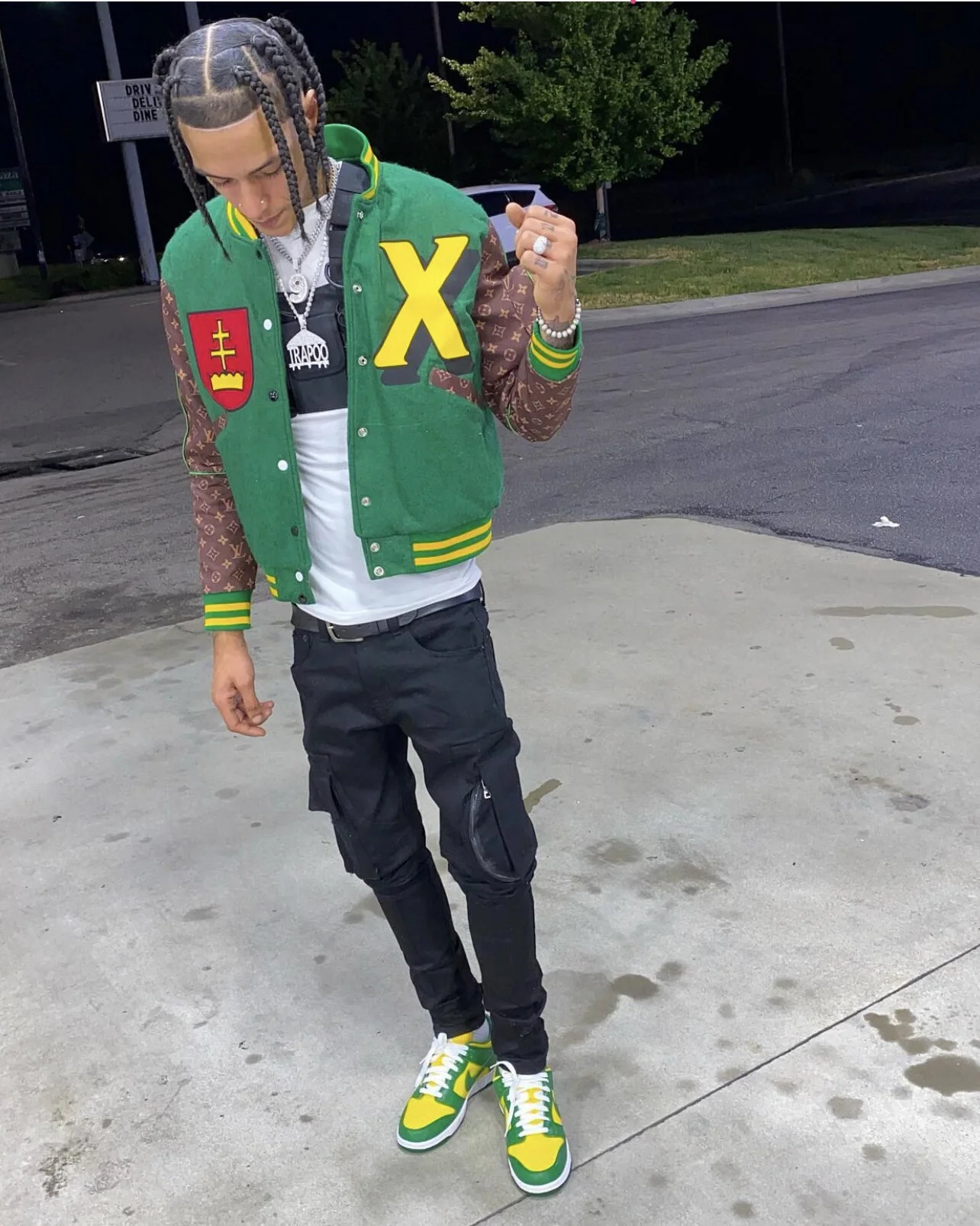 Godliest Jacket $203.99 Sold Out DESCRIPTIONVarsity Jacket with LV sleeves.DETAILSDo not wash.No chlorine bleachDry Clean only SHOP X › Godliest Jacket Size: Select Size Xsmall Small Medium Large Xlarge Color: Select Color Hot Pink Green Baby Blue Iris Purple Get notified by email when this product is in stock. Sign up to receive news and updates. Sold Out Added! DESCRIPTIONVarsity Jacket with LV sleeves.DETAILSDo not wash.No chlorine bleachDry Clean only